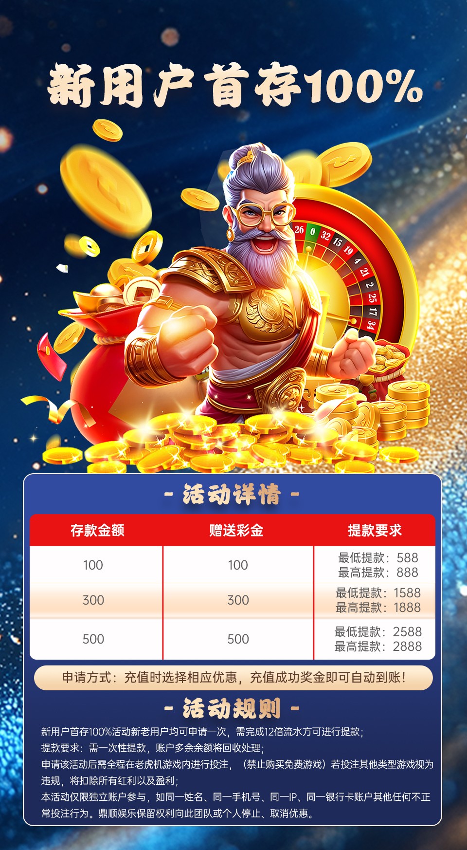 ✅活动1:首存100送100,300送300,500送500,只能娱乐电子,不包含街机