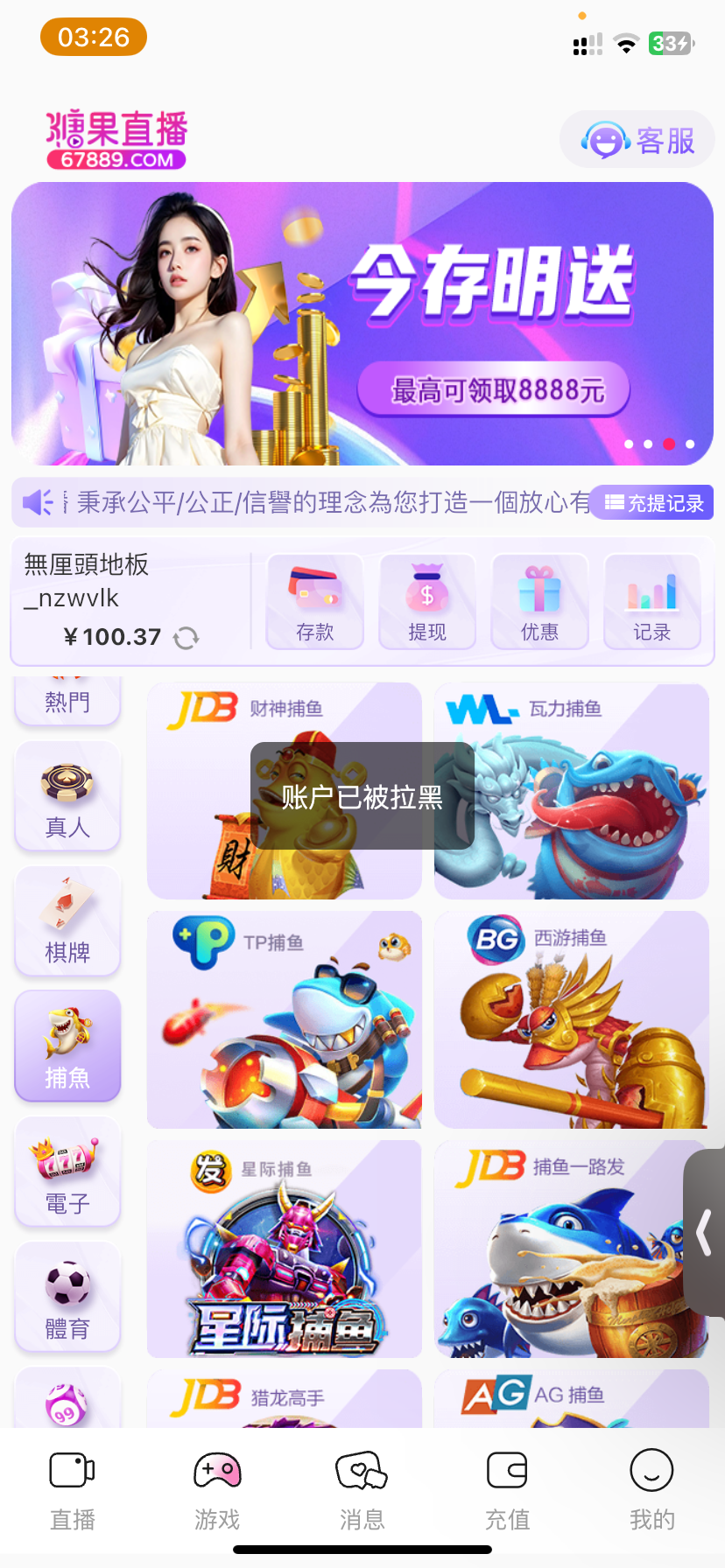 还在222.tv玩的兄弟们赶紧跑吧 糖果黄台222.tv送38,打到100提款被黑,妈的,一百都黑啊