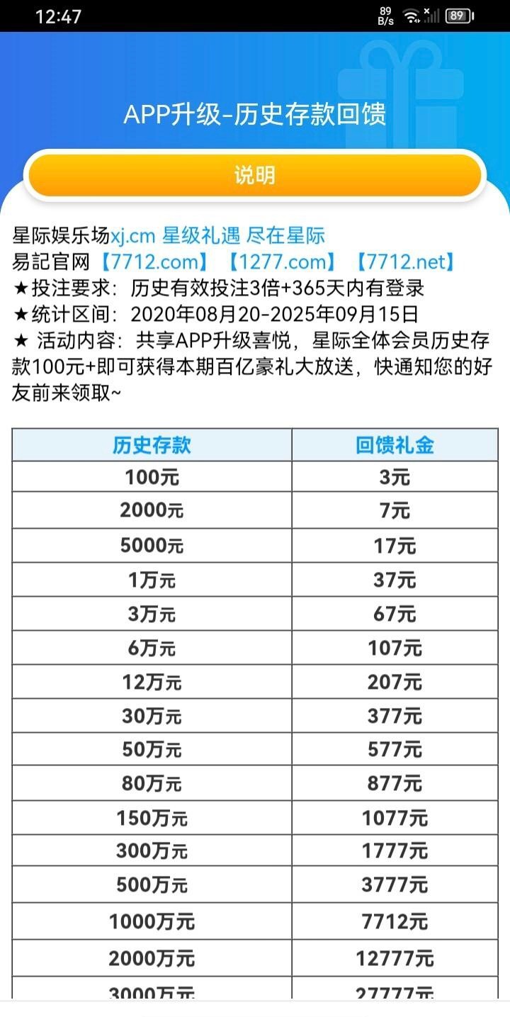 【星际娱乐场】历史存款彩金