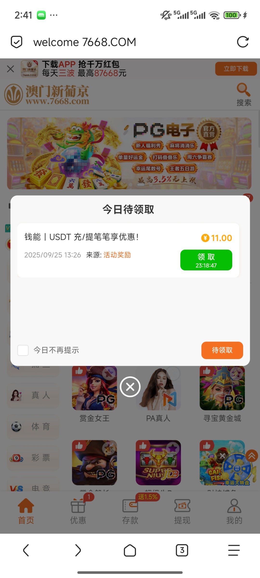 【7668】回馈彩金
