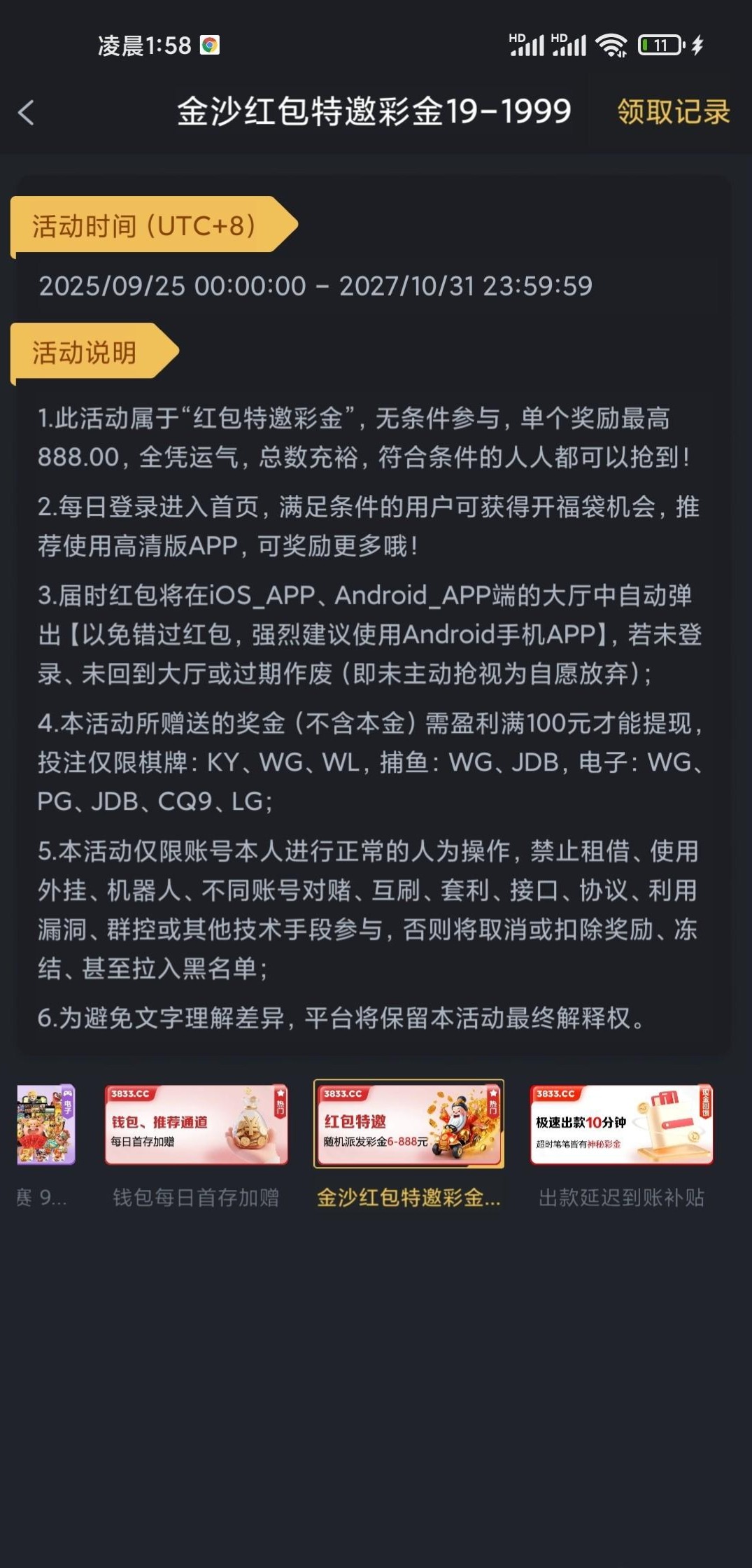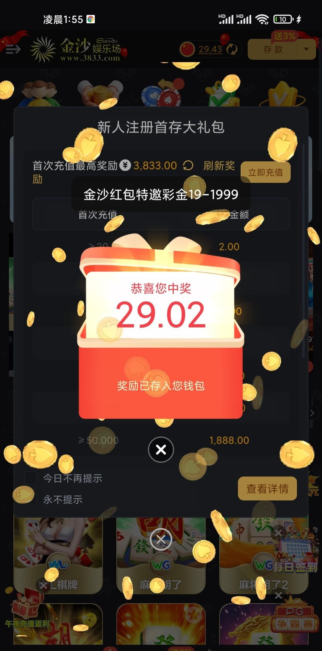 领了29 玩过的老哥可以去看看 我充过几十 官网 www.3833.com