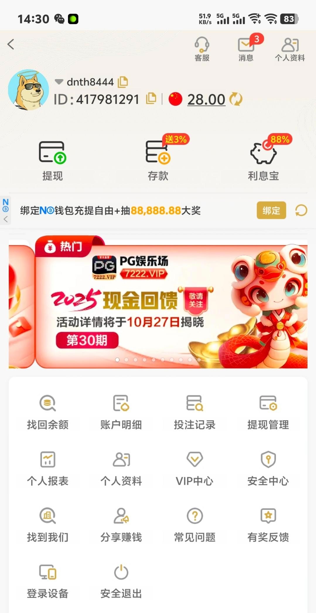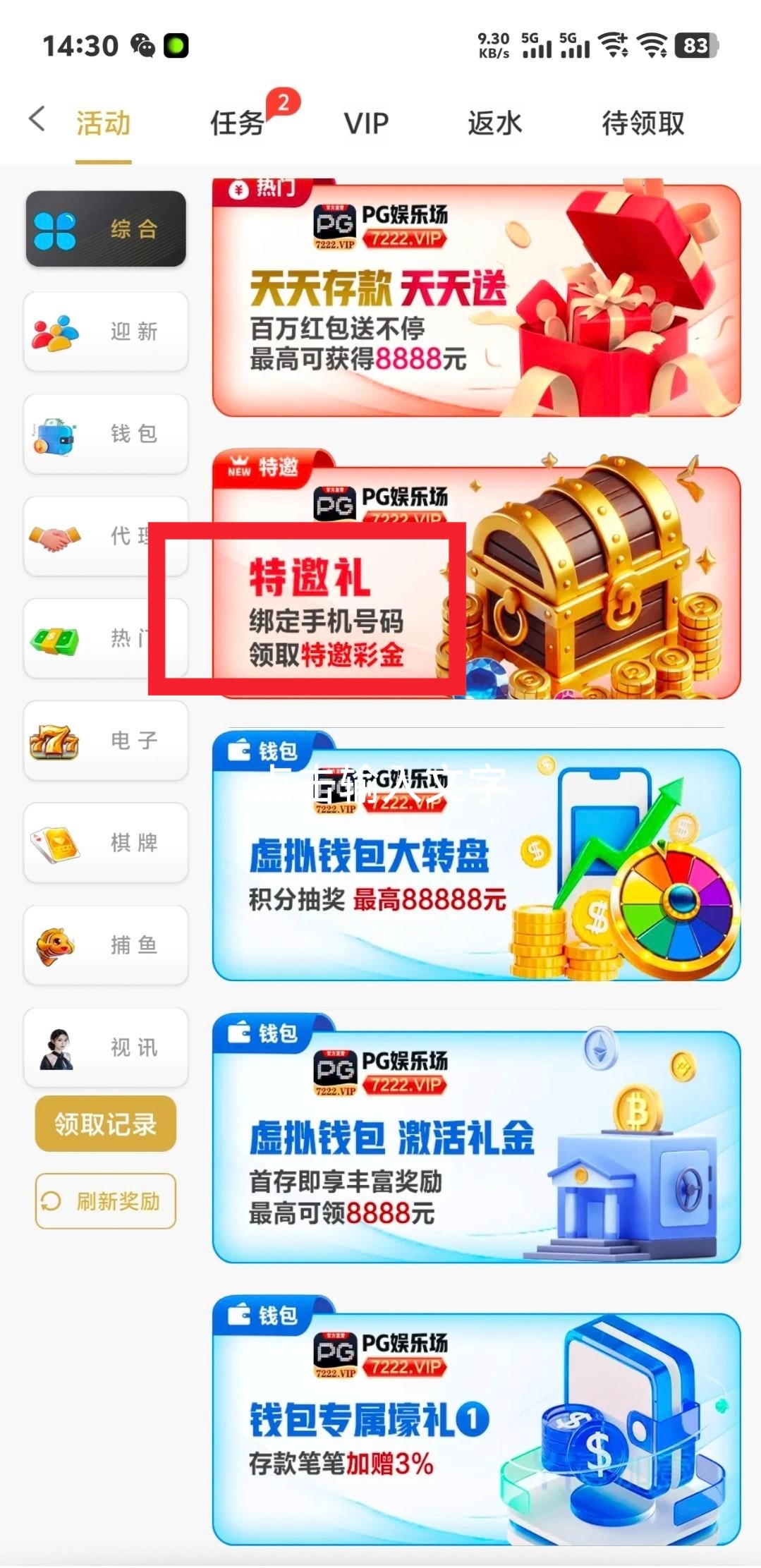 【PG7222】特邀自助彩金