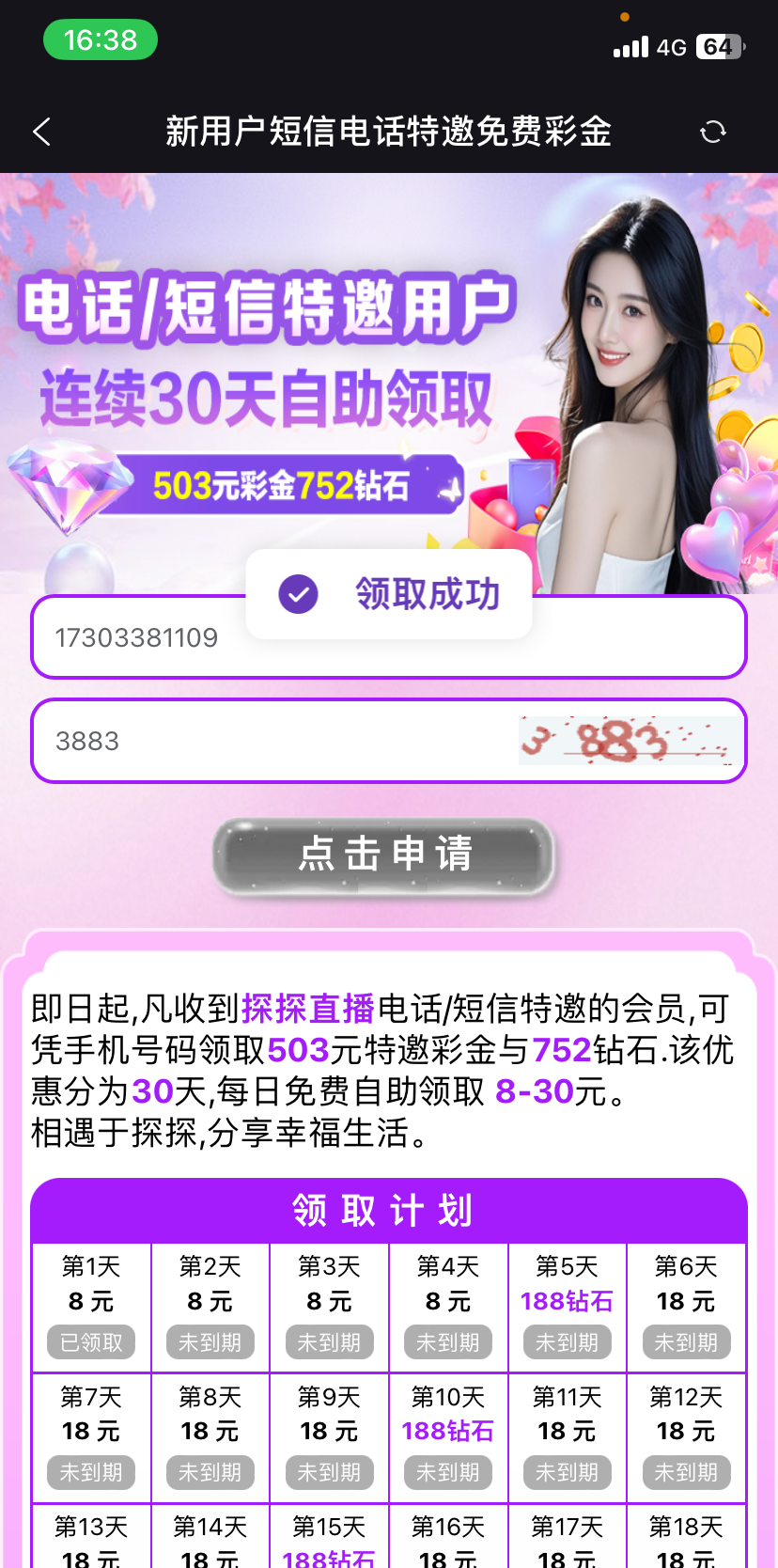 领完三天后要充值