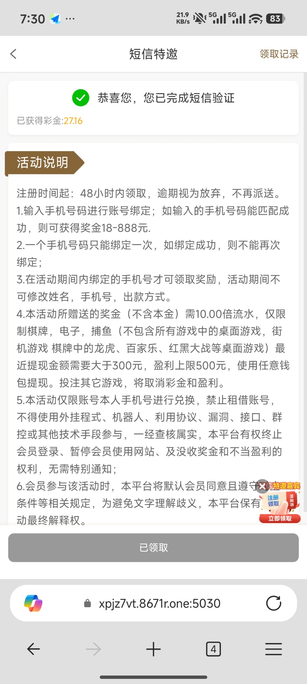 【新葡京8671】短信验证彩金