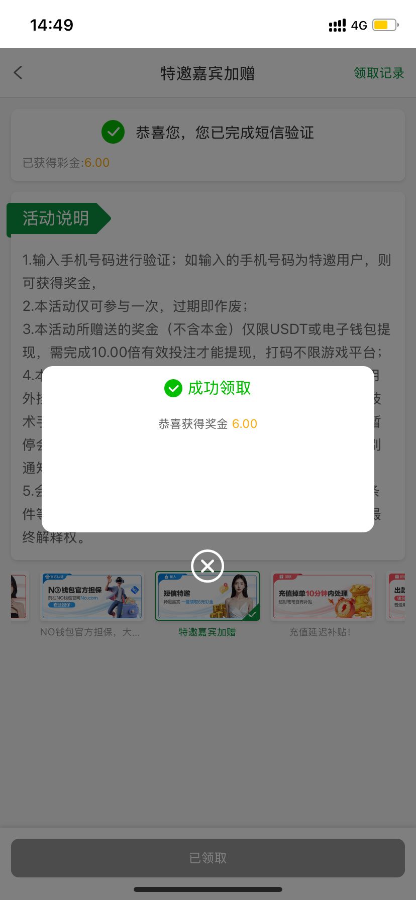 昨天领过了,没打出来